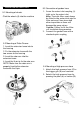 . OPERATION INSTRUCTIONS 5.3 Connection of garden hose 5.1 Mounting of wheels 1. Screw the water inlet coupling (1) tight on to the water inlet Note: The inlet filter must always be fitted in the water inlet pipe to filter out sand, lime stone and other impurities as these will damage the pump valves. Caution: Failure to fit the filter will invalidate the guarantee. 2. Connect the garden hose with a standard quick coupling Click the wheels (6) into the machine 5.2 Mounting of Patio Cleaner 1.