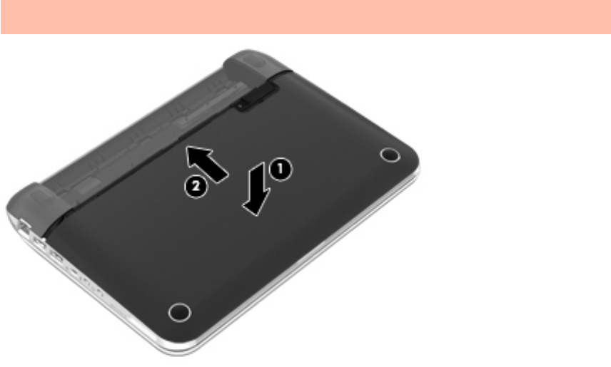 5. Lower the service access cover onto the computer (1) and then slide the cover (2) toward the