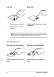 Left-click Right-click • Click an app to select it. • Double-click an app to launch it. Click this button to open the rightclick menu. NOTE: The areas inside the dotted line represent the locations of the left mouse button and the right mouse button on the touchpad. Two-finger gestures Two-finger scroll (up/down) Two-finger scroll (left/right) Slide two fingers to scroll up or down. Slide two fingers to scroll left or right.