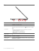 Left 1 2 3 4 5 6 1. Power connector Connect to ac power through an ac power adapter. 2. Battery/Charging status indicator This indicator shows whether the computer is connected to ac power. • Solid white: Connected to ac power (battery power 91%–100%) • Solid amber: Connected to ac power (battery power 1%–90%) • Off: Not connected to ac power 3. HDMI™ connector Connect to a compatible digital audio device or video monitor, such as an HDTV.