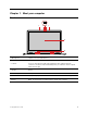 Chapter 1. Meet your computer Front 3 1 2 4 1 5 6 1. Microphones Capture or record sound and voice. Take pictures or record videos by clicking Camera from the Start menu. 2. Camera If you use other apps that support photographing, video chatting, and video conference, the camera starts automatically when you enable the camera-required feature from the app. 3. Shutter Slide the shutter to cover or uncover the camera lens. It is designed to protect your privacy. 4.