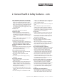 2. General Health & Safety Guidance - cont. performed periodically by the user. • Remember always to switch off and unplug the machine from the power supply before carrying out any setting up or maintenance operations. • Follow any instructions for the maintenance of accessories and consumables. • Check for alignment of moving parts, binding of moving parts, breakage of parts and any other conditions that may affect the operation of the machine.