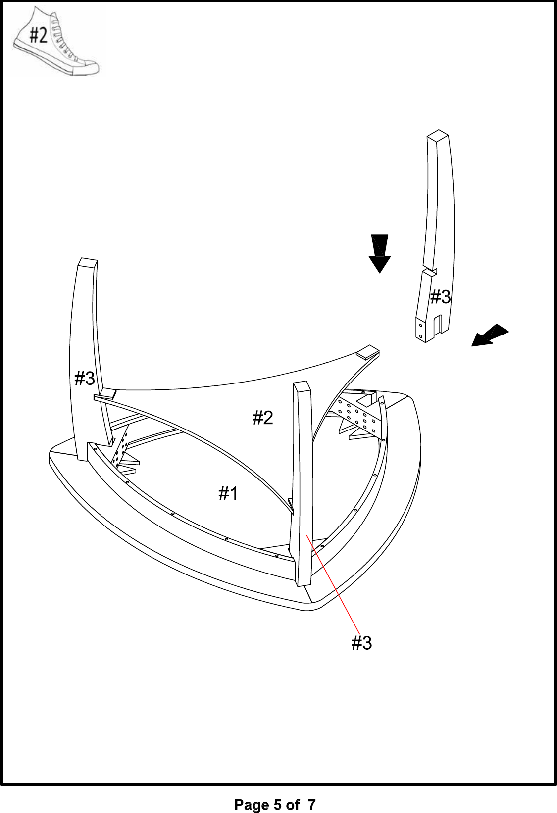 Insert the third leg (#3) into the designated slot located under the table top (#1),
