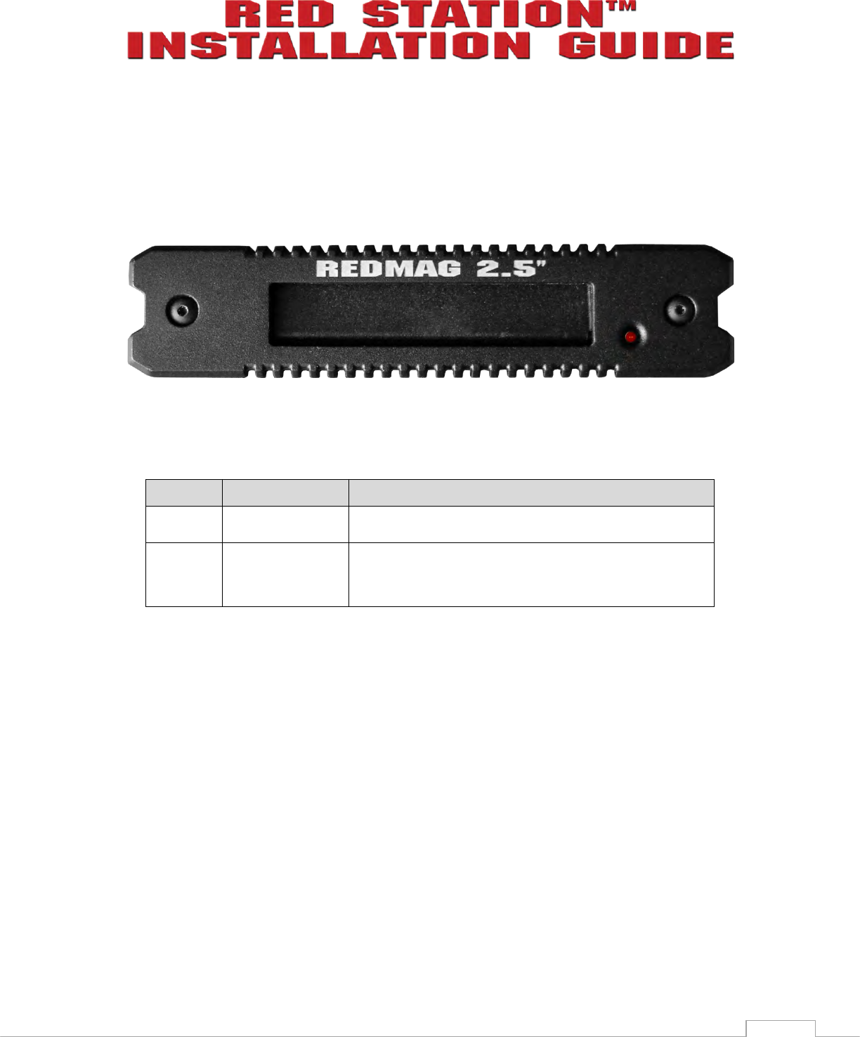 Table 2-7: RED STATION REDMAG 2.5” Connector/Component Descriptions – Front
