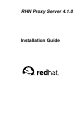 RHN Proxy Server 4.1.0: Installation Guide Copyright © 2001 - 2005 Red Hat, Inc. Red Hat, Inc. 1801 Varsity Drive Raleigh NC 27606-2072 USA Phone: +1 919 754 3700 Phone: 888 733 4281 Fax: +1 919 754 3701 PO Box 13588 Research Triangle Park NC 27709 USA RHNproxy(EN)-4.1.0-RHI (2005-04-20T13:40) Copyright © 2005 by Red Hat, Inc. This material may be distributed only subject to the terms and conditions set forth in the Open Publication License, V1.