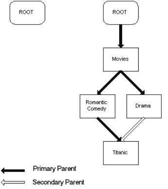default category. If a category/item only has one parent, that parent is implicitly the default.