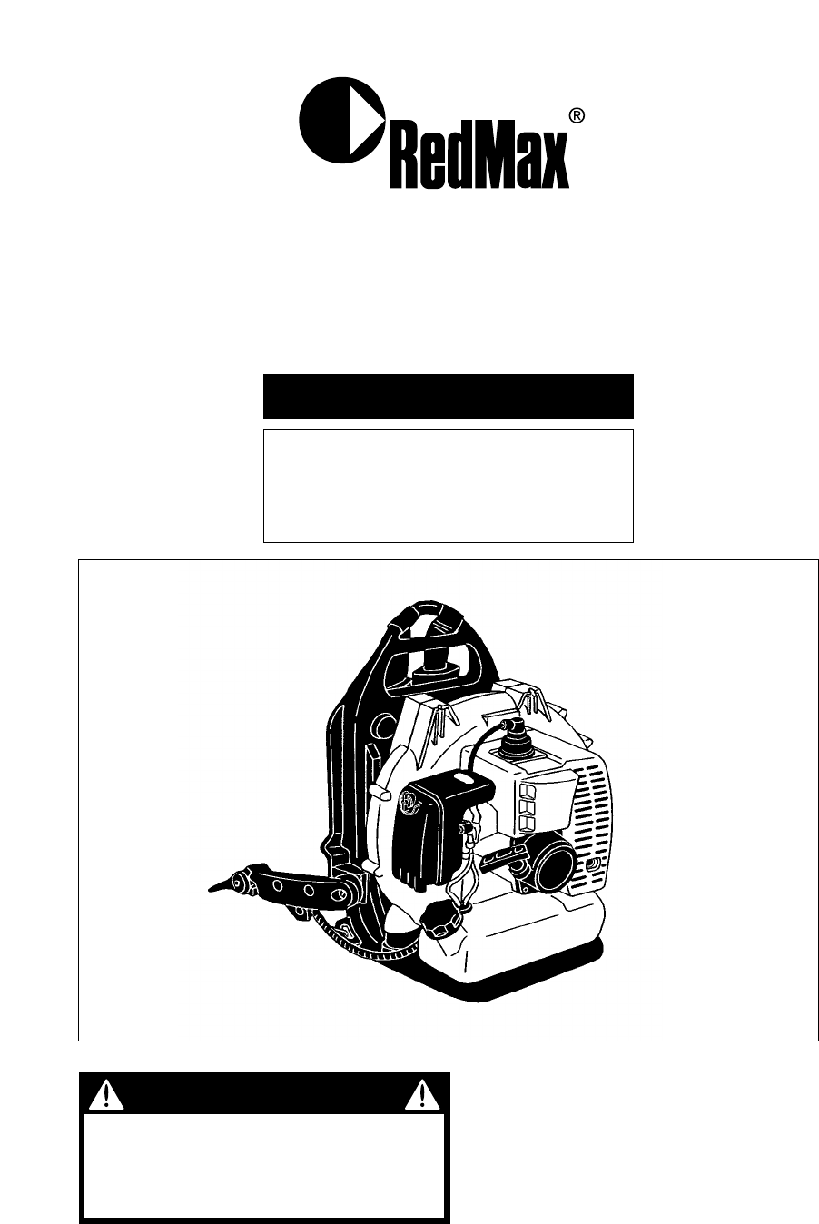 Read this manual carefully to understand all safety precautions, controls, proper operation and maintenance of your RedMax blower. Failure to do so could result in serious injury.