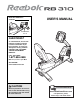BEFORE YOU BEGIN Congratulations for selecting the new REEBOK® RB 310 exercise cycle. Cycling is one of the most effective exercises for increasing cardiovascular fitness, building endurance, and toning the entire body. The RB 310 exercise cycle offers an impressive array of features to let you enjoy this healthful exercise in the convenience and privacy of your home. model number and serial number before calling. The model number is RBEX3976.0.