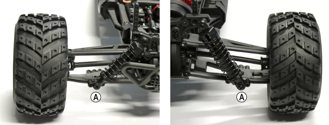 Amortyzatory możnazamontować nawahaczu dolnym(A) wróżnych pozycjach, copozwala naregulację ruchu
