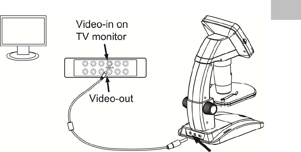 video cable into the microscopes Video port.