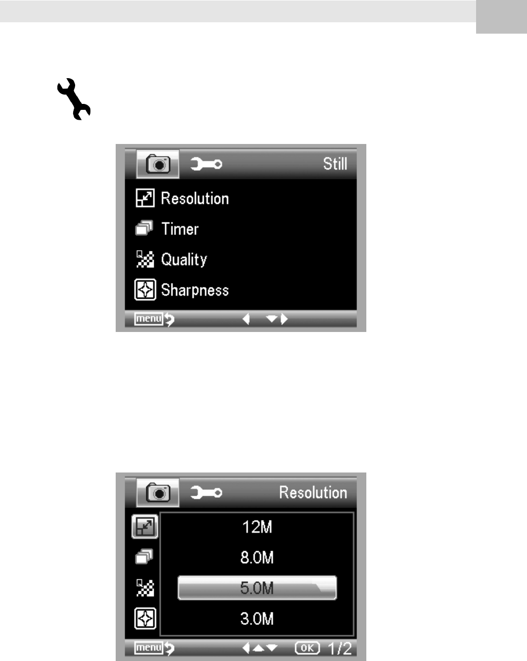 Here you can setup Resolution/Timer/Quality/Sharpness.