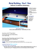 • • • • • Temporarily nail a 2”x 4” block over the end of the product to prevent it from pulling away. Roll out the product across the top of the trusses, pull tight and staple at approximately 4” intervals. Run subsequent courses of the product with the 3/4” staple tabs overlapping at the seams. Tape the seams with a Reflectix® Foil Tape (goal is an air-tight, snug seam seal). Install purlins over the insulation. Nail or screw to the trusses through the product. Install the metal roof to the purlins. 2.