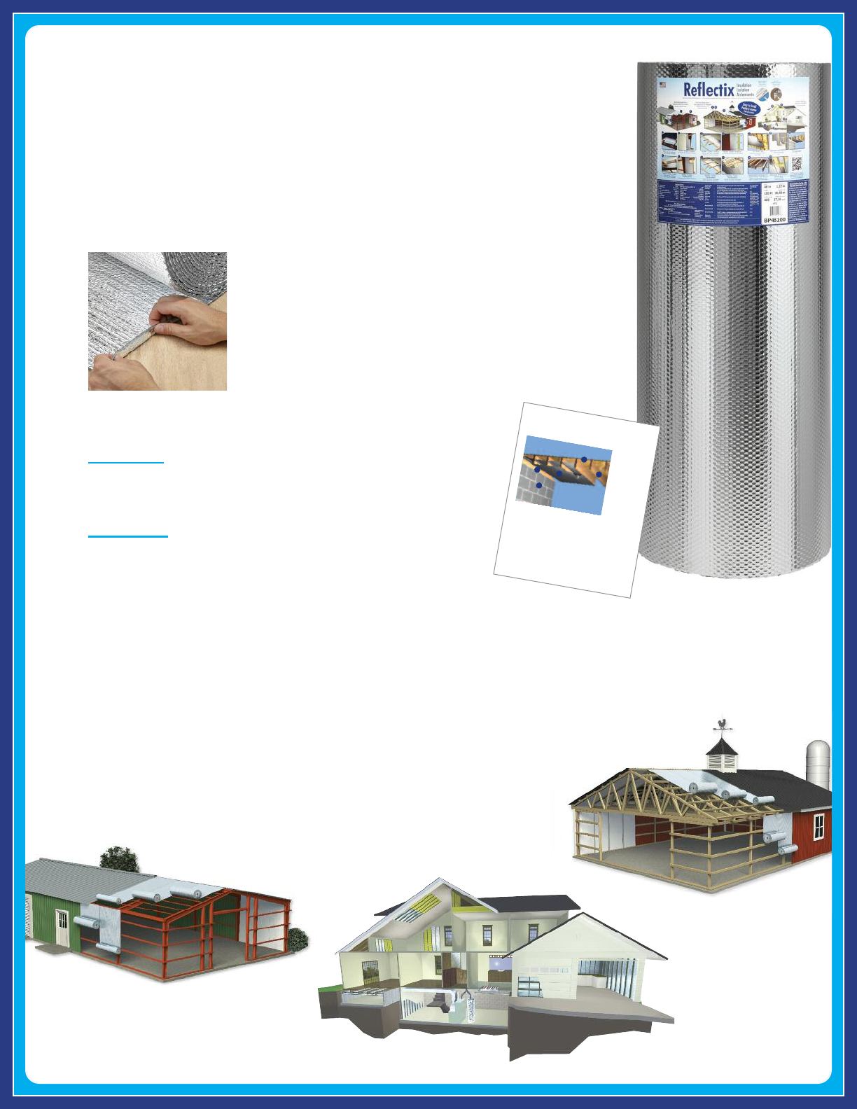 Metal Building / Roof / Retrofit Reflectix® Installation Instructions Reflectix® Insulation Exterior Roof Panel Purlin 1”x 2” (Nominal) Furring Strip 5. Red Metal (Structural Frame) 1. 2. 3. 4. 2 3 4 1 5 Tools Required: Safety Glasses Tape Measure Utility Knife Screw Gun Staple Gun Recommended Products: Staple Tab, Reflective/Bubble/Bubble/Reflective - Roll: ST48100 (48”x 100’) Open Interior with 1”x 2” Furring R-11* Heat Flow Down (and a Radiant Barrier) R-4.