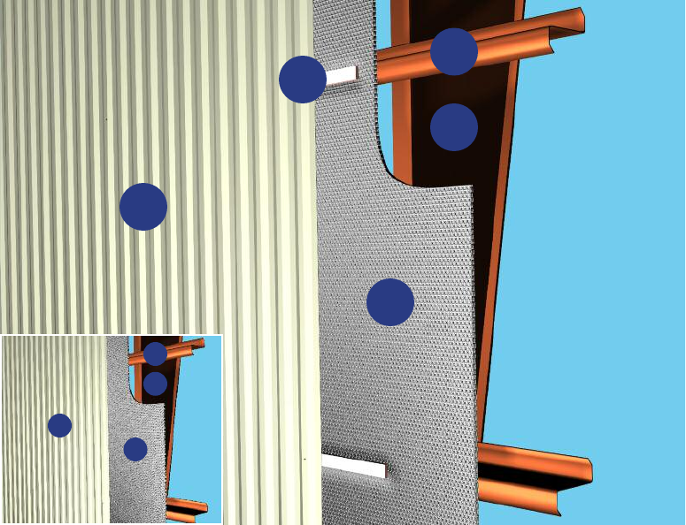 • Install a 3/4” thermal break and attach corrugated metal exterior finish.