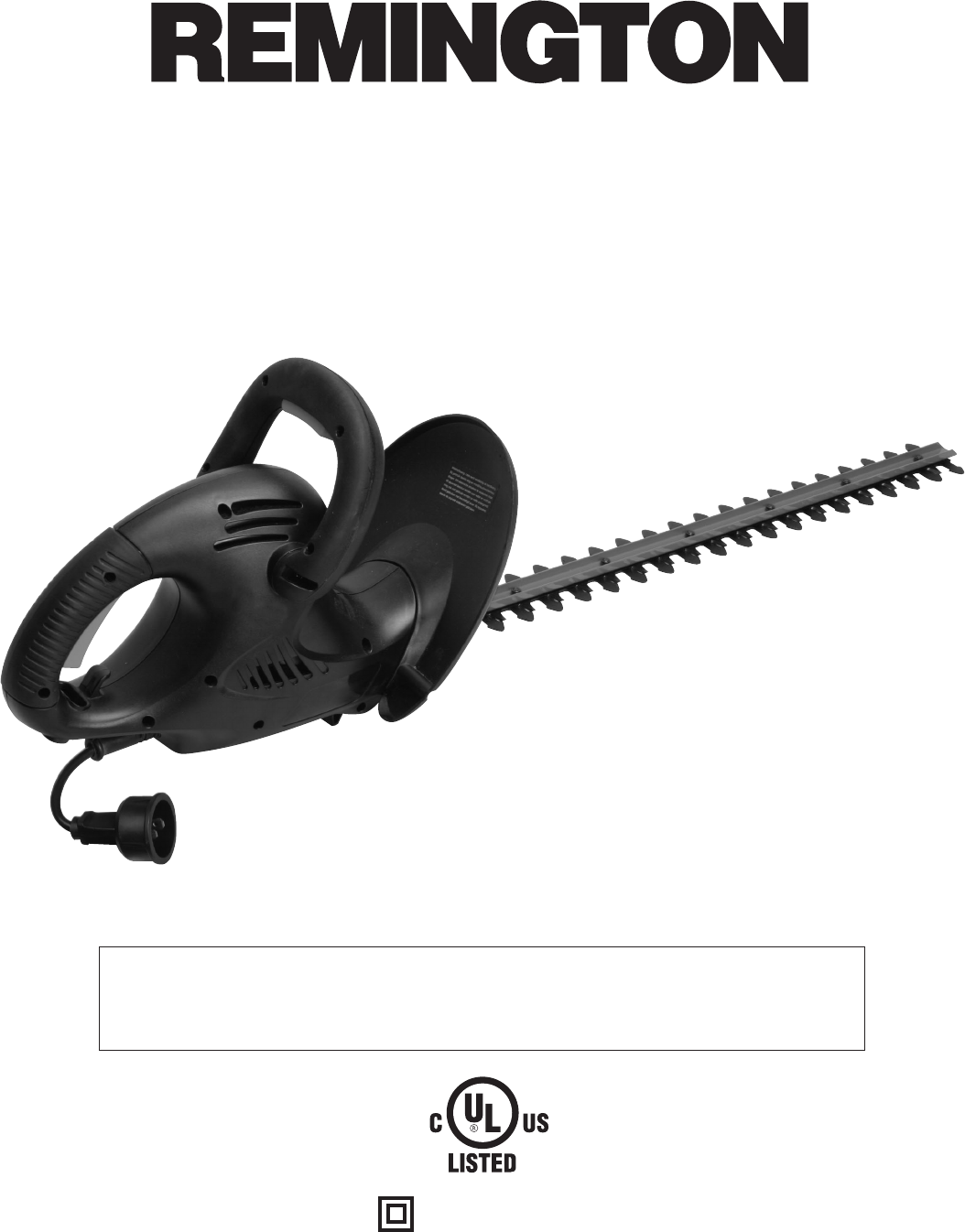 iv | welcome Thank you for purchasing this Remington® Dual-action Electric Hedge Trimmer. We are proud to offer this quality product to assist you in keeping your property neat and well-groomed. This owner’s manual provides complete instructions for safely assembling, operating, and maintaining your hedge trimmer. Read and save these instructions. Refer to this manual each time before using your hedge trimmer.