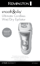 EP7036AU SMOOTH & SILKY® ULTIMATE CORDLESS WET/DRY EPILATOR Use & Care Instruction Manual Thank you for purchasing your new Remington® Ultimate Cordless Wet/Dry Epilator. This epilator will remove hair from the face, legs, arms, bikini line, and underarms, leaving your skin feeling soft and smooth.
