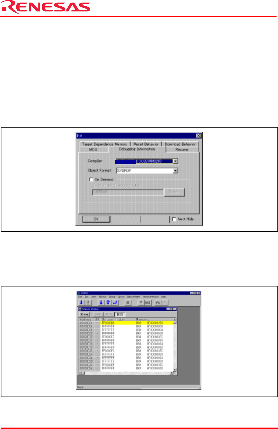 While the Debugging Information tab is open, select “CC32R(M32R)” for Compiler.