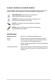Sicherheitsinformationen Elektrische Sicherheit • • • • • • Um die Gefahr eines Stromschlags zu verhindern, ziehen Sie die Netzleitung aus der Steckdose, bevor Sie das System an einem anderen Ort aufstellen. Beim Anschließen oder Trennen von Geräten an das oder vom System müssen die Netzleitungen der Geräte ausgesteckt sein, bevor die Signalkabel angeschlossen werden. Ziehen Sie ggf. alle Netzleitungen vom aufgebauten System, bevor Sie ein Gerät anschließen.