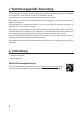 • Alle Personen, die dieses Gerät bedienen, installieren, aufstellen, in Betrieb nehmen oder warten müssen diese Bedienungsanleitung beachten. • Stellen Sie keine Gefäße mit Flüssigkeiten, z.B. Gläser, Eimer, Vasen oder Pflanzen auf das Gerät oder in seine unmittelbare Nähe. Flüssigkeiten könnten ins Gehäuseinnere gelangen und dabei die elektrische Sicherheit beeinträchtigen.