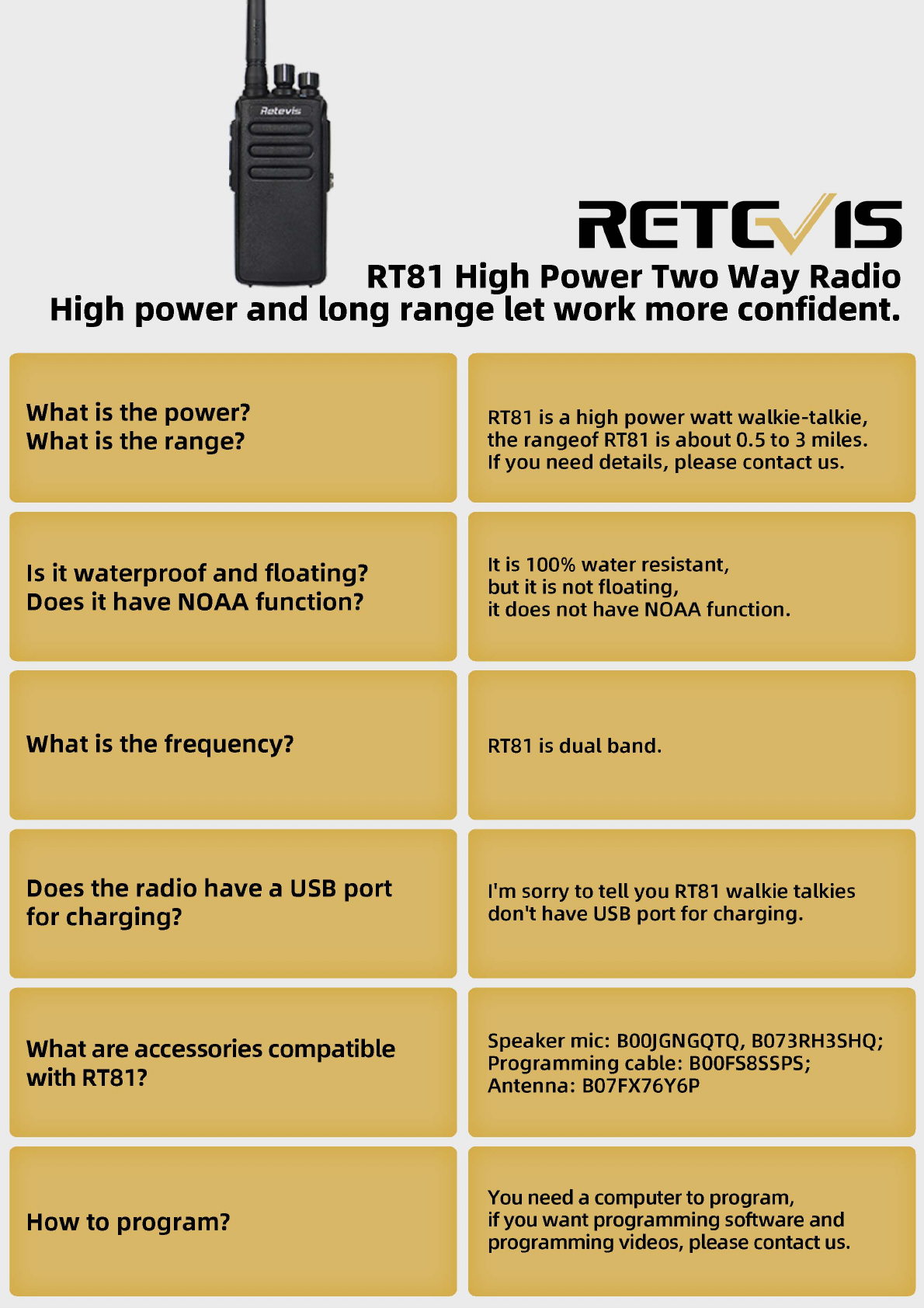 RT81 Two Way Radio Long Range,IP67 Waterproof Walkie Talkies High Power,Digital Two Way Radio 32 Channel (1 Pack)