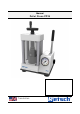 Operating the machine N T Fig. 3: Filling in the sample • Fill the sample material into the die tool (approx. 15 grams). The pressure pieces are ground and polished on one side. • Insert the second pressure piece (N) with the ground and polished side (T) facing downwards. • Insert the plunger (M) into the die tool. Press the plunger (M) downwards so that the air cushion escapes. 5.5.3 Pressing the tablet D B PW H J t Fig.