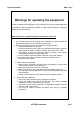 Operator manual REX-***R(F) Do not directly spray sterilization fluid to the system. Please be always cautious in using spray. For cleaning the system please use cloths wetted with sterilization fluid and clean the surface. Do not use flammable sprays. It may cause fire or damages to the system. After sterilization and before supplying power, take enough time for ventilation of the room. Flammable gas may cause explosion, fire or electric shock.