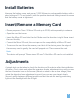 Install Batteries Unscrew the battery cover and use an 18350 lithium-ion rechargeable battery with a rated voltage of 3.7V, and install it with the positive electrode facing inward to ensure that the battery cover is tightened. Insert/Remove a Memory Card • Please prepare a Class 10 Micro SD card up to 32GB, sold separately in advance. • Open the card slot cover. • Insert the Micro SD card into the slot. Make sure the direction is right. Never insert the card forcibly.