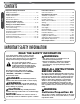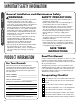 WARNING: If the information in these instructions is not followed exactly, a fire or explosion may result, causing death, personal injury, or property damage. For Your Safety! •D o not store or use gasoline or other flammable vapors and liquids in the vicinity of this or any other appliance. To do so may result in an explosion or fire. • Installation and service must be performed by a qualified installer, service agency, or the gas supplier.