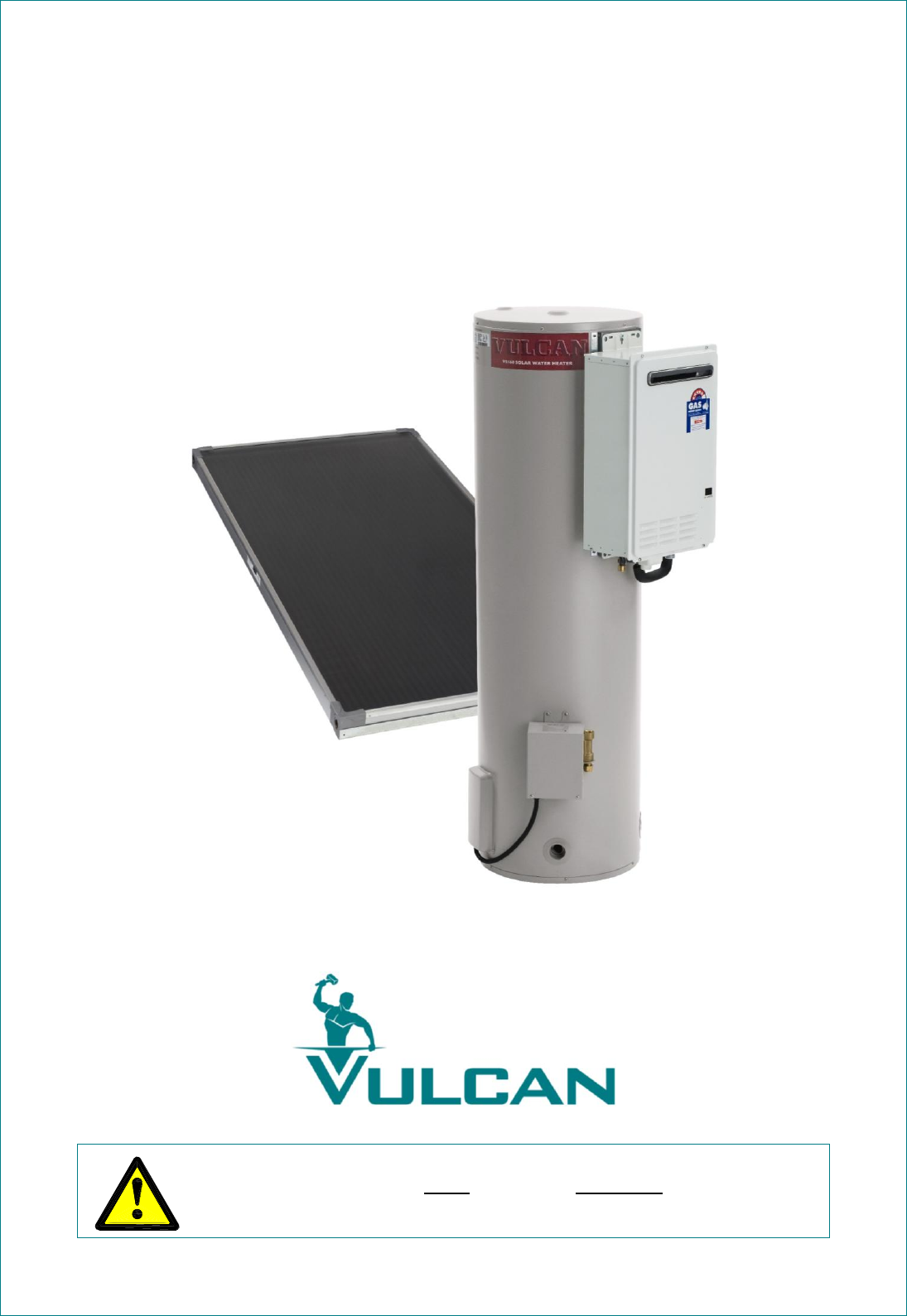 ABOUT YOUR WATER HEATER WATER HEATER APPLICATION This water heater is designed for use in a single family domestic dwelling for the purpose of heating potable water. Its use in an application other than this may shorten its life. MODEL TYPE ® Your Vulcan solar VS160 water heater is designed for the solar collector(s) to be roof mounted and the vitreous enamel lined solar storage tank to be installed at ground or floor level, remotely from the solar collector(s).
