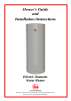 Owner’s Guide and Installation Instructions Electric Domestic Water Heater This water heater must be installed and serviced by a qualified person. Please leave this guide with the householder.
