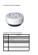 . Remote control button diagram 4.Remote control function description Button label 1 2 3 4 5 6 7 function The head motor extends. Head motor retracted FLAT one-key reset, all motors retract to the minimum stroke position。 The foot motor extends. Foot motor retracted The motor runs to the M1 position with one key (initial value is 0). Multiplexing function: press M1 within 2s, the buzzer will sound 3 times, and record the current motor position to M1.
