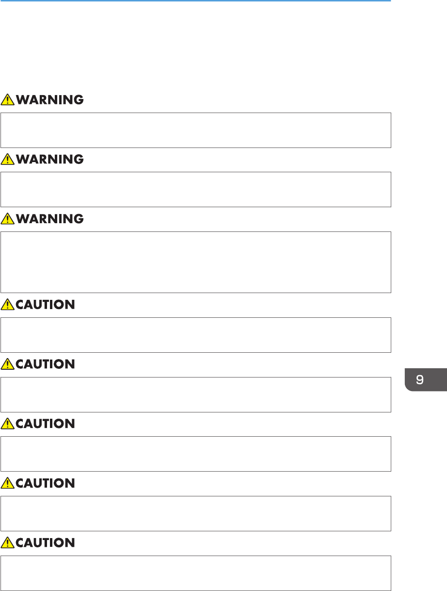 • If toner or used toner is inhaled, gargle with plenty of water and move into a fresh air