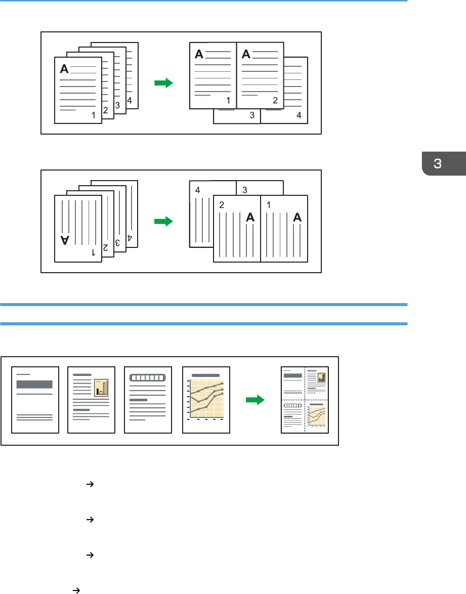 Combine several pages onto one side of a sheet.