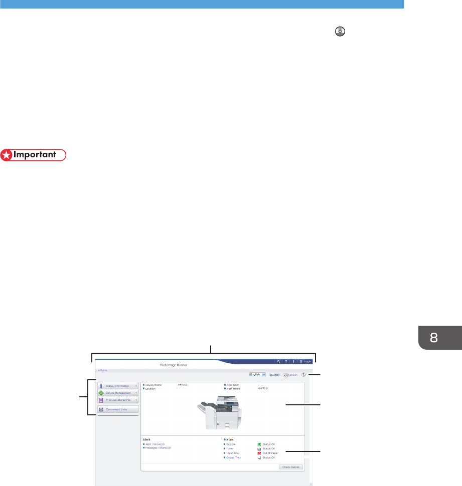 This chapter describes frequently used Web Image Monitor functions and operations. For the