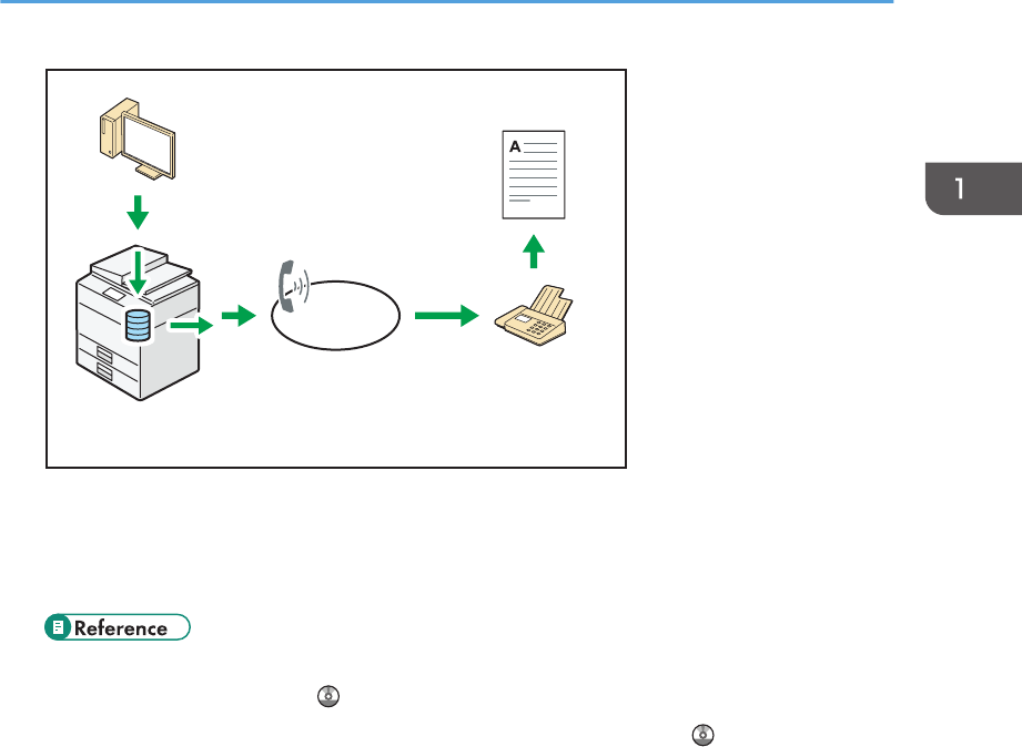 • For details about how to use the function, see "Fax via Computer", Fax .