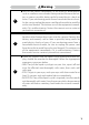 Safety Precautions Warning Symbols Various symbols are used throughout this instruction manual and on the product to prevent physical harm to you or other people and damage to property. The symbols and their meanings are explained below. Danger Warning Caution This symbol indicates matters that may lead to imminent risk of death or serious injury if ignored or incorrectly handled. This symbol indicates matters that may lead to death or serious injury if ignored or incorrectly handled.