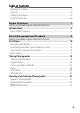 Basic Photography and Playback First-time user? Read this. Read this section before using your camera for the first time. First Steps..........................................................10 Taking Photographs........................................18 Viewing and Deleting Photographs...............