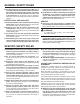 SPECIFIC SAFETY RULES � When blade is binding, or when interrupting a cut for any reason, release the trigger and hold the saw motionless in the material until the blade comes to a complete stop. Never attempt to remove the saw from the work or pull the saw backward while the blade is in motion, or kickback may occur. Investigate and take corrective actions to eliminate the cause of blade binding.