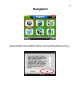 Programs Window When you turn on your RightWay Navigator, the following screen appears. Music Player Time Battery Level Movie Player Navigation E-Book Reader Settings Photo Viewer From this screen you may choose to navigate to a destination, listen to music, watch a movie, read an e-book, view photos or adjust the settings simply by tapping your choice.