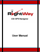 ABOUT THIS MANUAL SYMBOLS The following symbols refer to specific passages of text: Warnings. Instructions and tips for operation. LIABILITY RightWay GPS, its dealers, suppliers and distributors disclaim all liability for any use of this product in any way that may cause accidents, damage or that may violate the law.