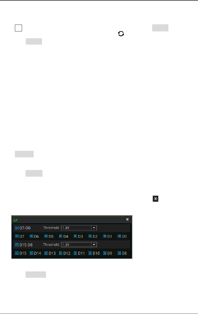 window, you can select the LA channel and set the threshold. Tap "D7-D0" to