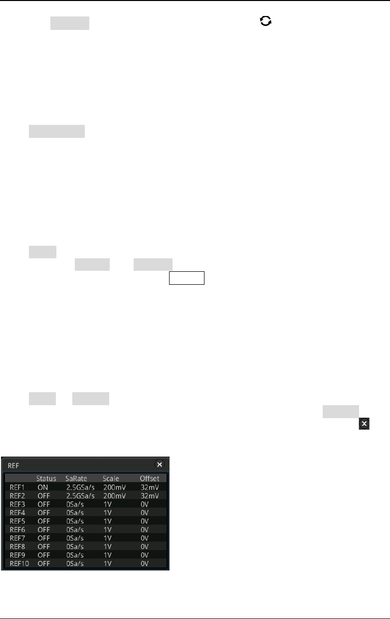 Note: This operation only clears the display of the reference waveform on the screen,