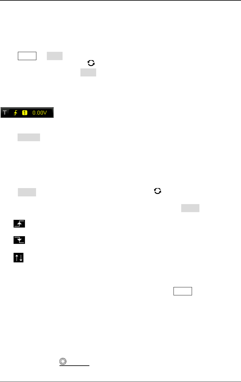 the edge on which the oscilloscope triggers. Then, the current edge type is displayed