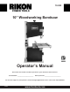 0-305 10” Woodworking Bandsaw 4001824 Operator’s Manual Record the serial number and date of purchase in your manual for future reference. Serial Number: _________________________ Date of purchase: _________________________ For technical support or parts questions, email techsupport@rikontools.com or call toll free at (877)884-5167 10-305M4 www.rikontools.
