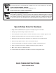 ALWAYS DISCONNECT TOOLS. Disconnect tools before servicing and when changing accessories such as blades, bits, and cutters. ALWAYS AVOID ACCIDENTAL STARTING. Make sure switch is in “OFF” position before plugging in cord. NEVER LEAVE TOOLS RUNNING UNATTENDED. ALWAYS CHECK FOR DAMAGED PARTS. Before initial or continual use of the tool, a guard or other part that is damaged should be checked to assure that it will operate properly and perform its intended function.