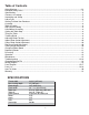 Table of Contents Safety Warnings..................................................................................................................................................2 -3 Bandsaw Safety Rules ..........................................................................................................................3 Specifications ........................................................................................................................................4 Contents of Package ..........