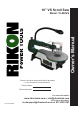 6” VS Scroll Saw Owner’s Manual Model: 10-600VS Record the serial number and date of purchase in your manual for future reference. Serial number: Date of purchase: For more information: www.rikontools.com or info@rikontools.com For Parts or Questions: Part # 10-600VSM1 techsupport@rikontools.