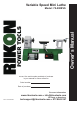 Variable Speed Mini Lathe Owner’s Manual Model: 70-200EVS Record the serial number and date of purchase in your manual for future reference. Serial number: Date of purchase: For more information: www.rikontools.com or info@rikontools.com For Parts or Questions: Part # 70-200EVSM1 techsupport@rikontools.