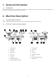 Index 1 GENERAL INFORMATION 1.1 Foreword 2 MACHINE DESCRIPTION 2.1 2.2 2.3 2.4 2.5 2.6 2.7 2.8 Machine identification Getting to know your machine Technical specification Recommended protective clothing Noise emission Prescribed use of the machine Hazards Safety instructions for mini lathe 3 INSTALLATION 4 ADJUSTMENT 4.1 4.2 4.3 4.4 4.
