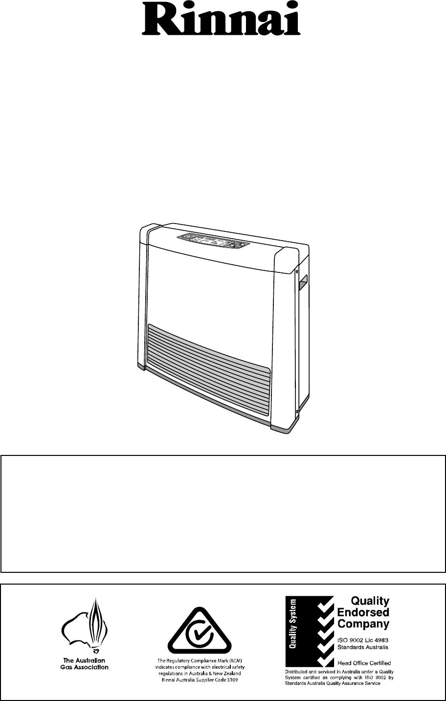 CUSTOMER OPERATING INSTRUCTIONS Specifications: See back cover of this instruction. UNPACKING Never lift the heater out of the carton by top louvres. Check for damage, if unit is damaged contact supplier or Rinnai for advice. BEFORE USING THE HEATER Check unit supplied is correct for gas type in your area. Refer to local Gas Authority for confirmation of gas type if in doubt.